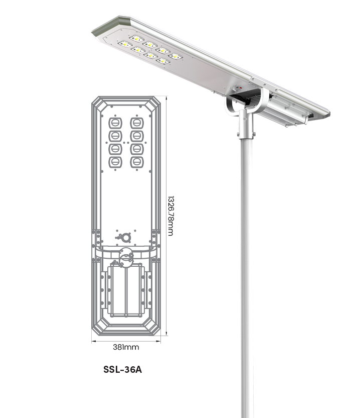 The SSL-36A commercial street light is built from a strong, durable mix of aluminum and polycarbonate materials.Smart design boosts overall efficiency and ensures lasting reliability, making it a perfect fit for all kinds of outdoor uses.