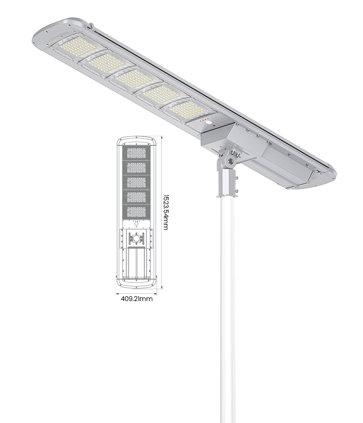 SSL-75A  commercial street light is equipped with an efficient cooling system. Our model “Flow” actively reduces heat buildup, helping extend the battery’s lifespan and maintain reliable performance over time. With its sharp design and smart thermal management, it keeps things cool and consistent, ensuring long-lasting power and smooth operation when it matters most.