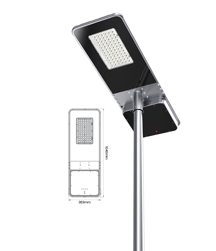 The SSL-96A solar street light features a sleek all-in-one design with a dark black, ultra-thin body that gives any outdoor space a modern, stylish look. It’s not only functional—it also brings a clean, polished touch that instantly elevates the feel of its surroundings.